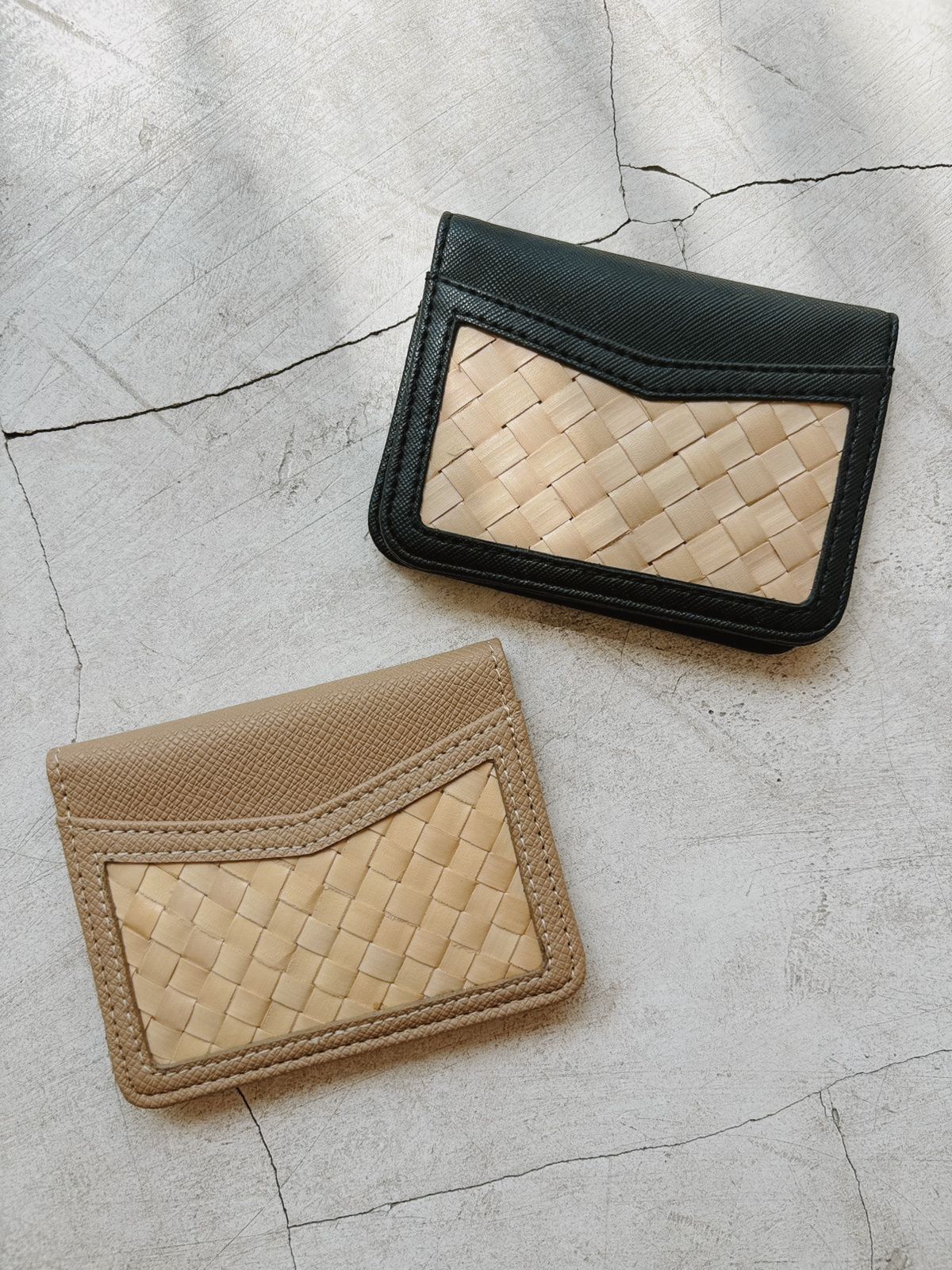 Cove Rattan & Leather Compact Wallet