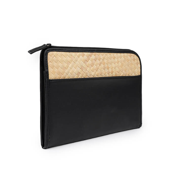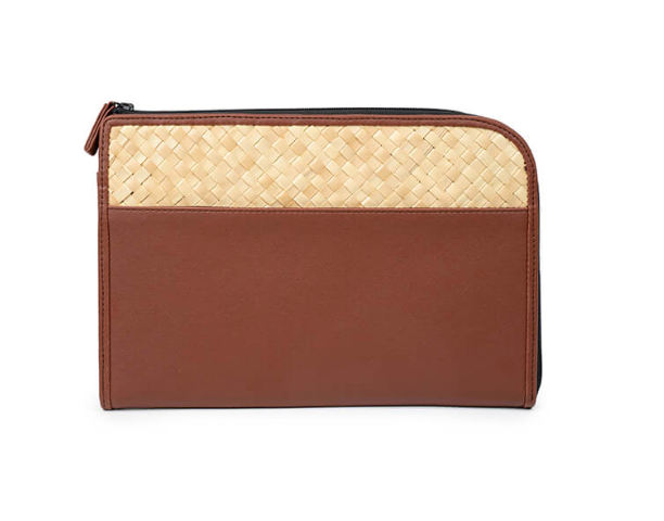 Cove Rattan & Leather Organization Pouch
