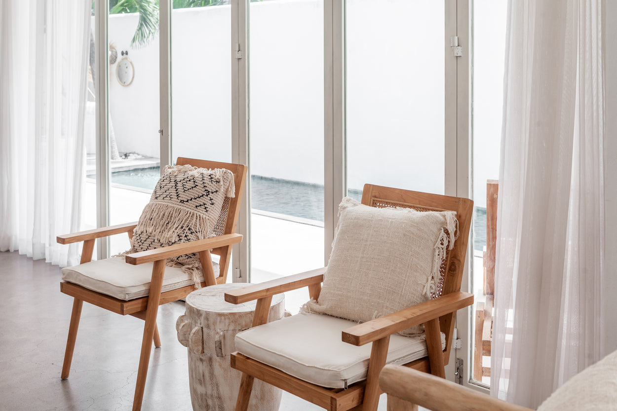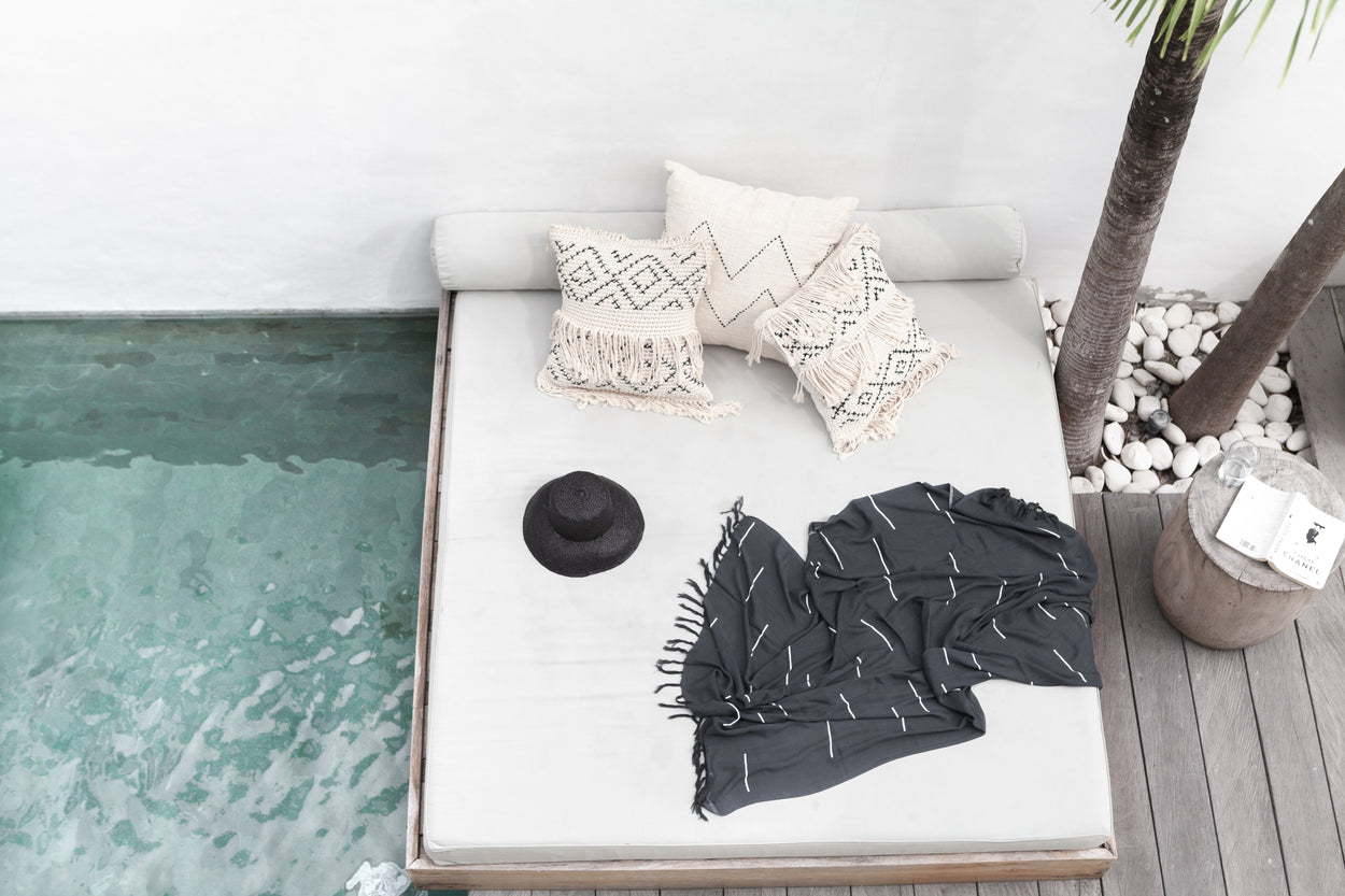 Handwoven from hand spun, organic cotton, this heavyweight, textured pillow makes a beautiful statement in any space and tells a story of craft and intentionality. No detail has been overlooked. From the hand stitched front detailing to the macramé backing, this pillow is gorgeous no matter which way it lands.