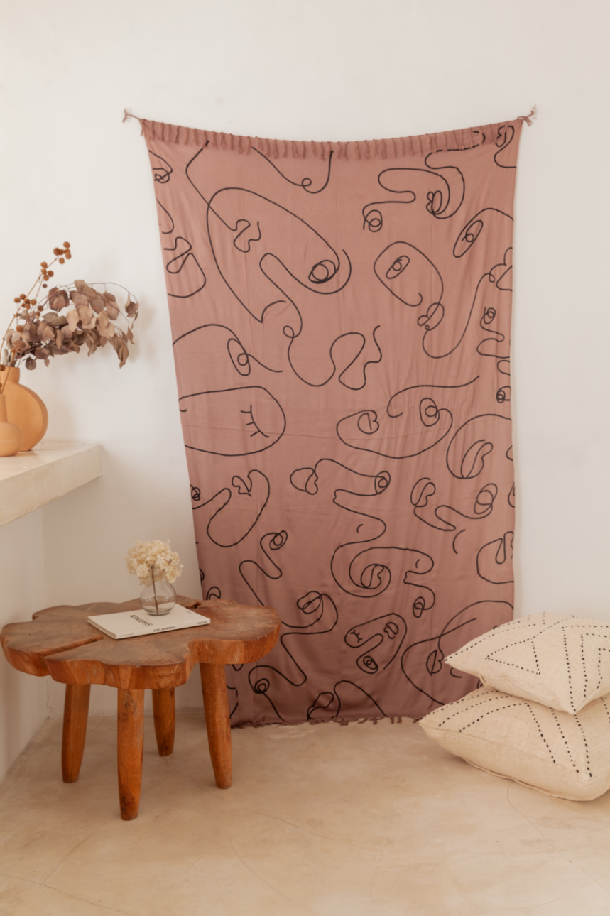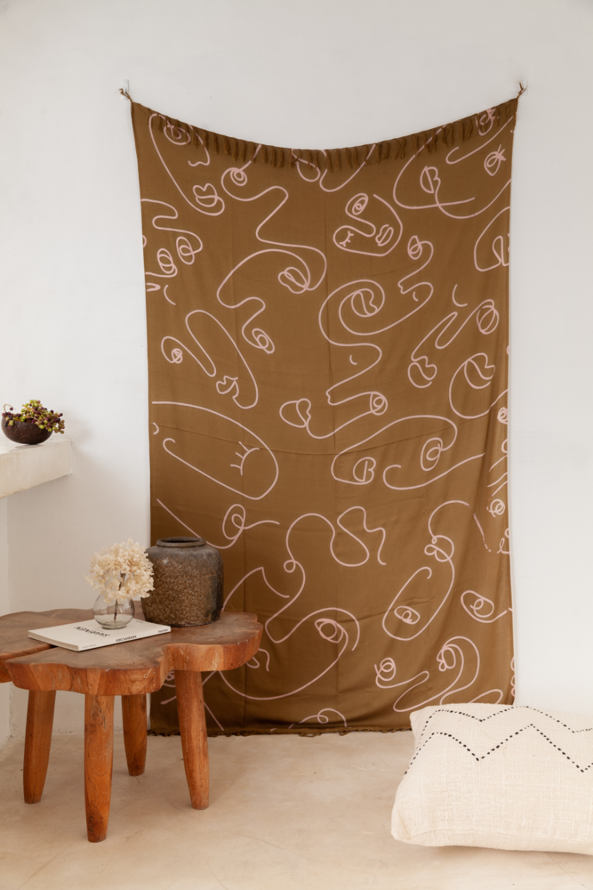This textile can be worn in endless ways, used to dress up an outfit or your space. Can be worn as a wrap in the summer, a scarf in the fall or hung as a tapestry on your wall- it’s a beautiful statement, handmade with love in Bali, Indonesia that tells a story of generations of craft and culture.