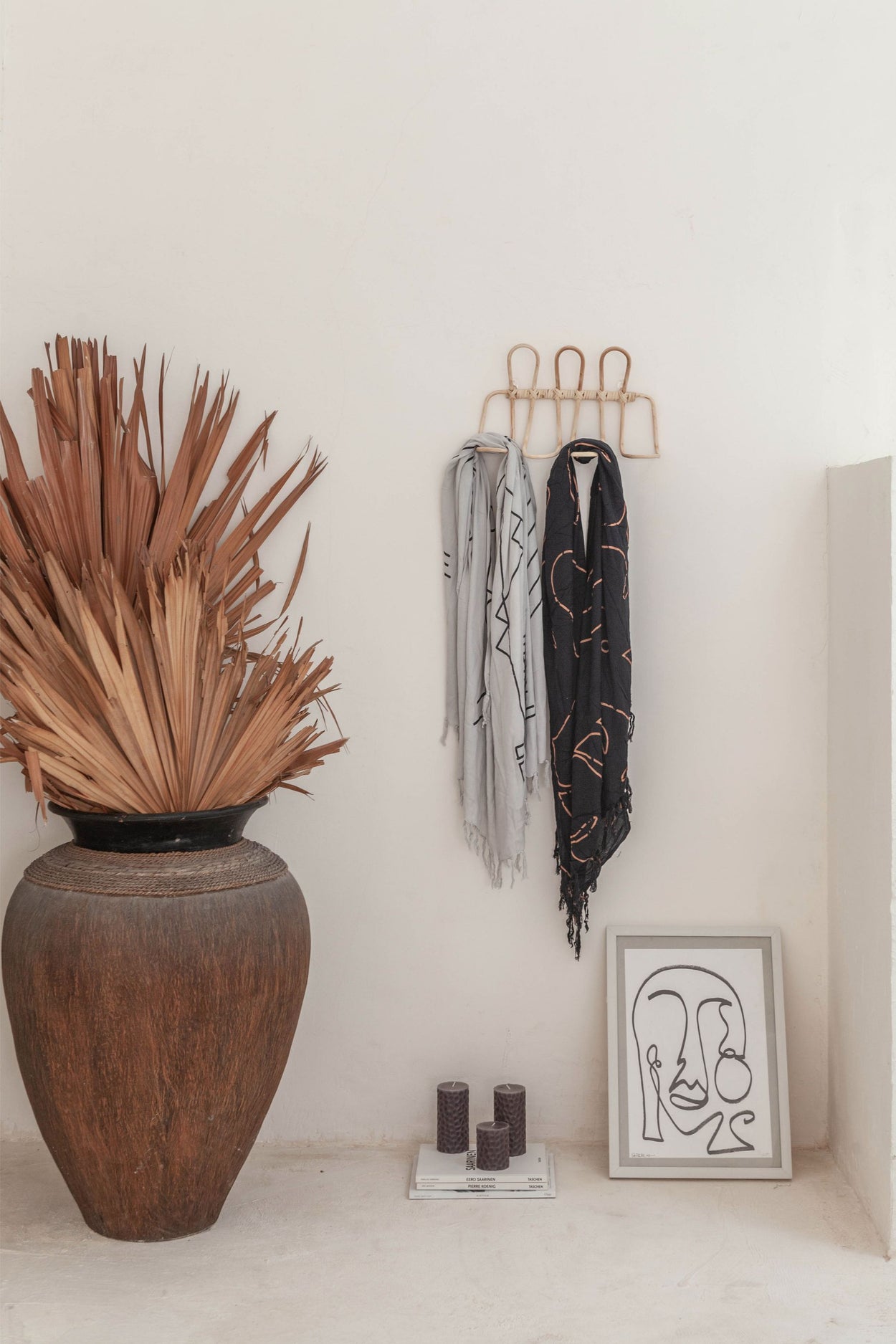Inspired by the rolling waves of Bali's famous shorelines, this handmade, natural rattan wall hook creates the perfect place to hang a sandy towel, evening coat or favorite sun hat.