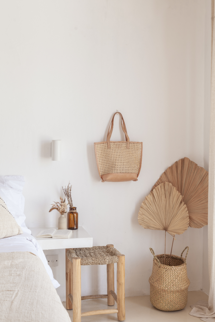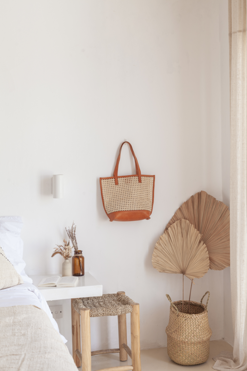 This elevated tote bag features leather detailing and gorgeous cane webbing. These natural elements combine beautifully to create a sophisticated yet casual feel.