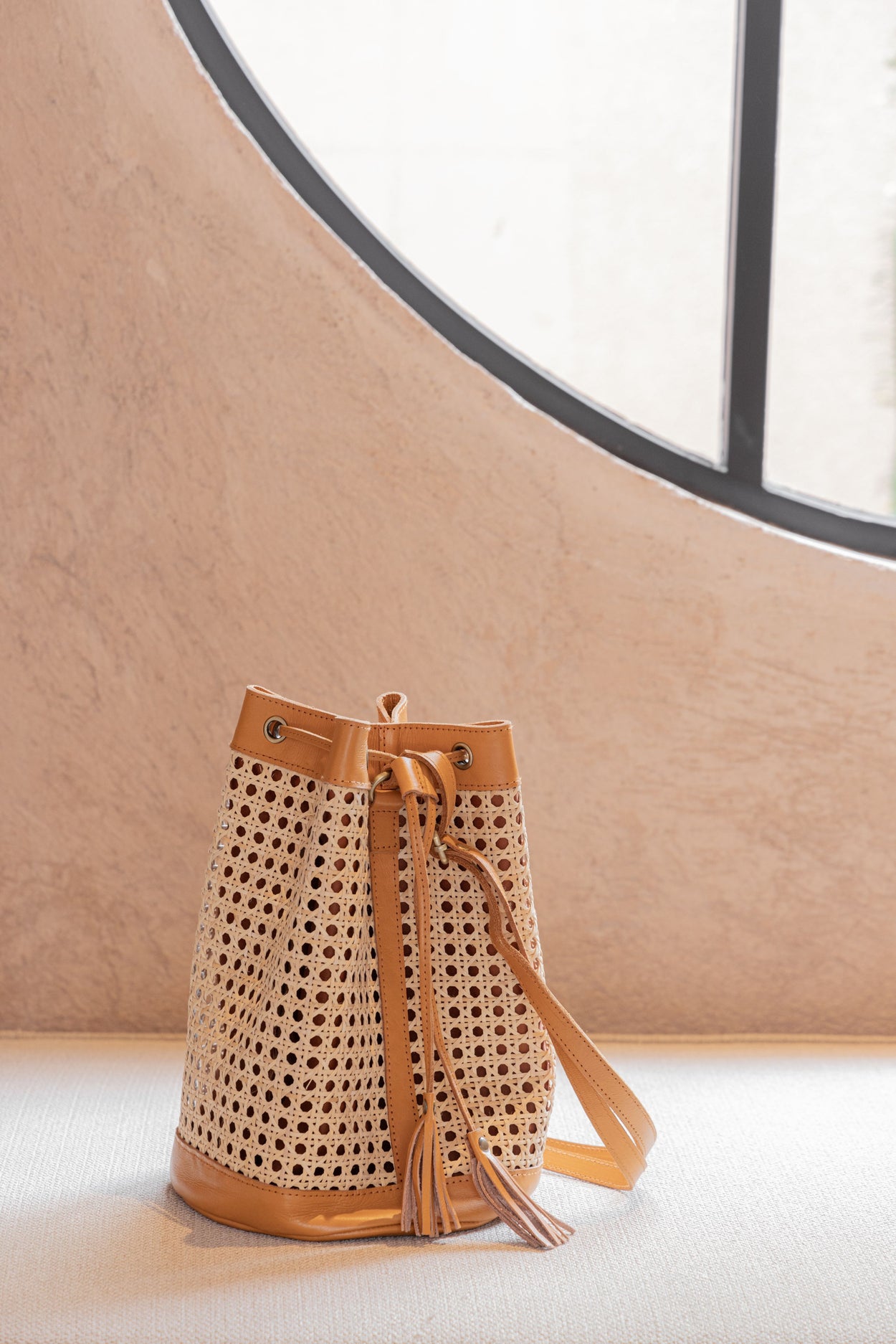 This elevated backpack features leather detailing and gorgeous cane webbing. These natural elements combine beautifully to create a sophisticated yet casual feel.