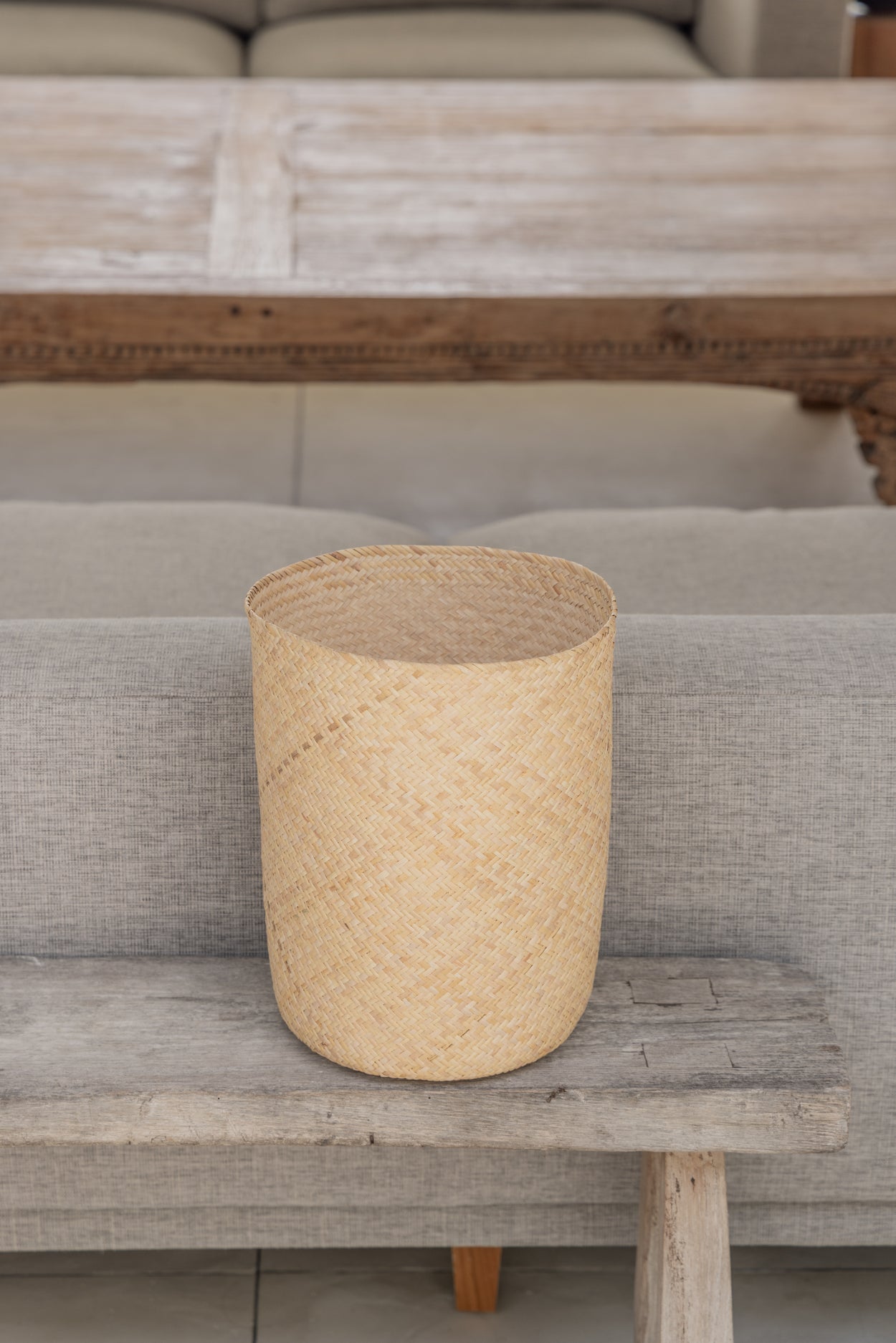 Intricately woven by hand from natural materials native to Bali, Indonesia, each one tells a story of care and craftsmanship. Its slender shape makes it perfect for holding blankets, towels or your favorite house plant.