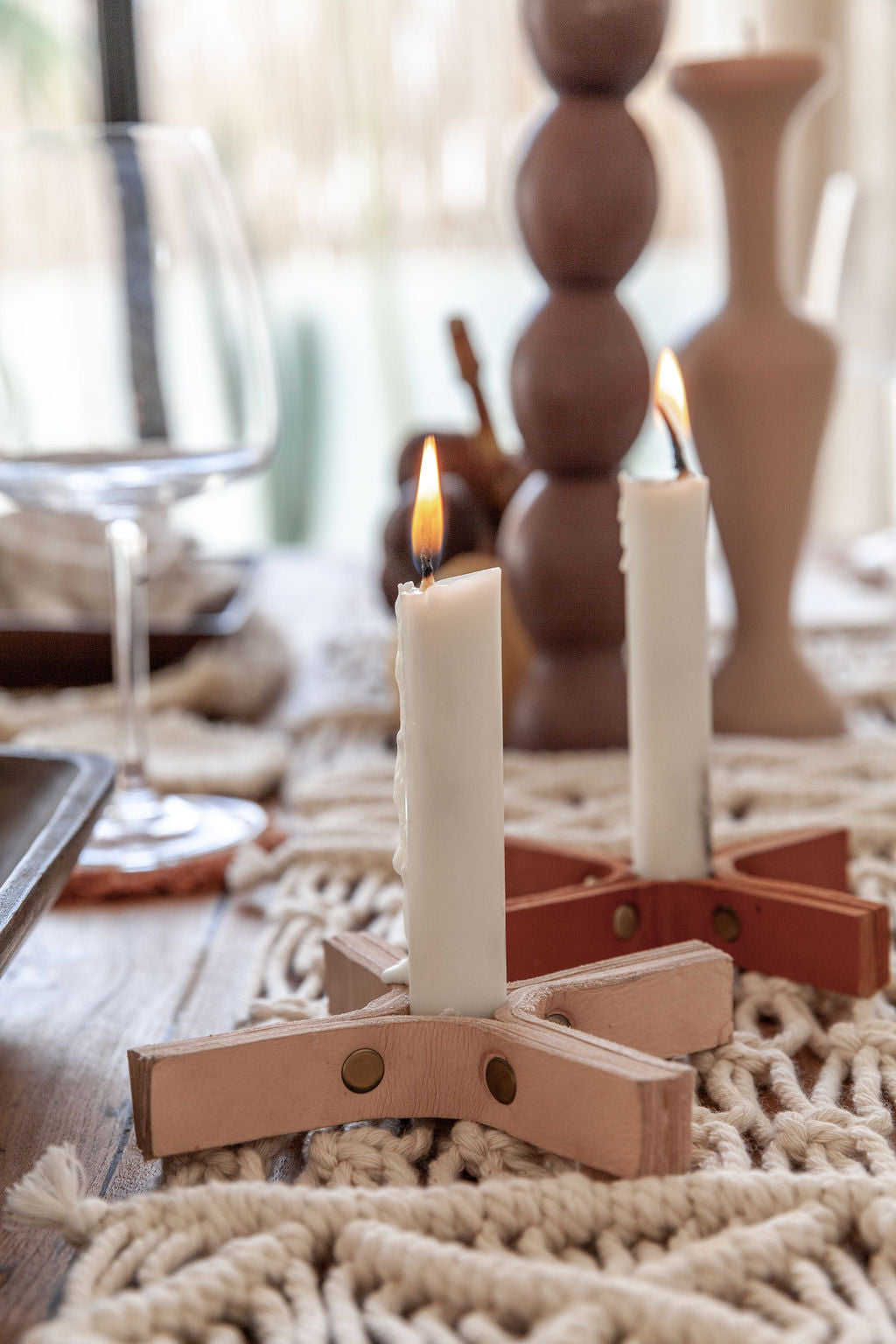 These minimalist candle holders were designed to enhance your Fall tablescape in a subtle yet elegant fashion. Set the mood while supporting Balinese artisans in their craft!