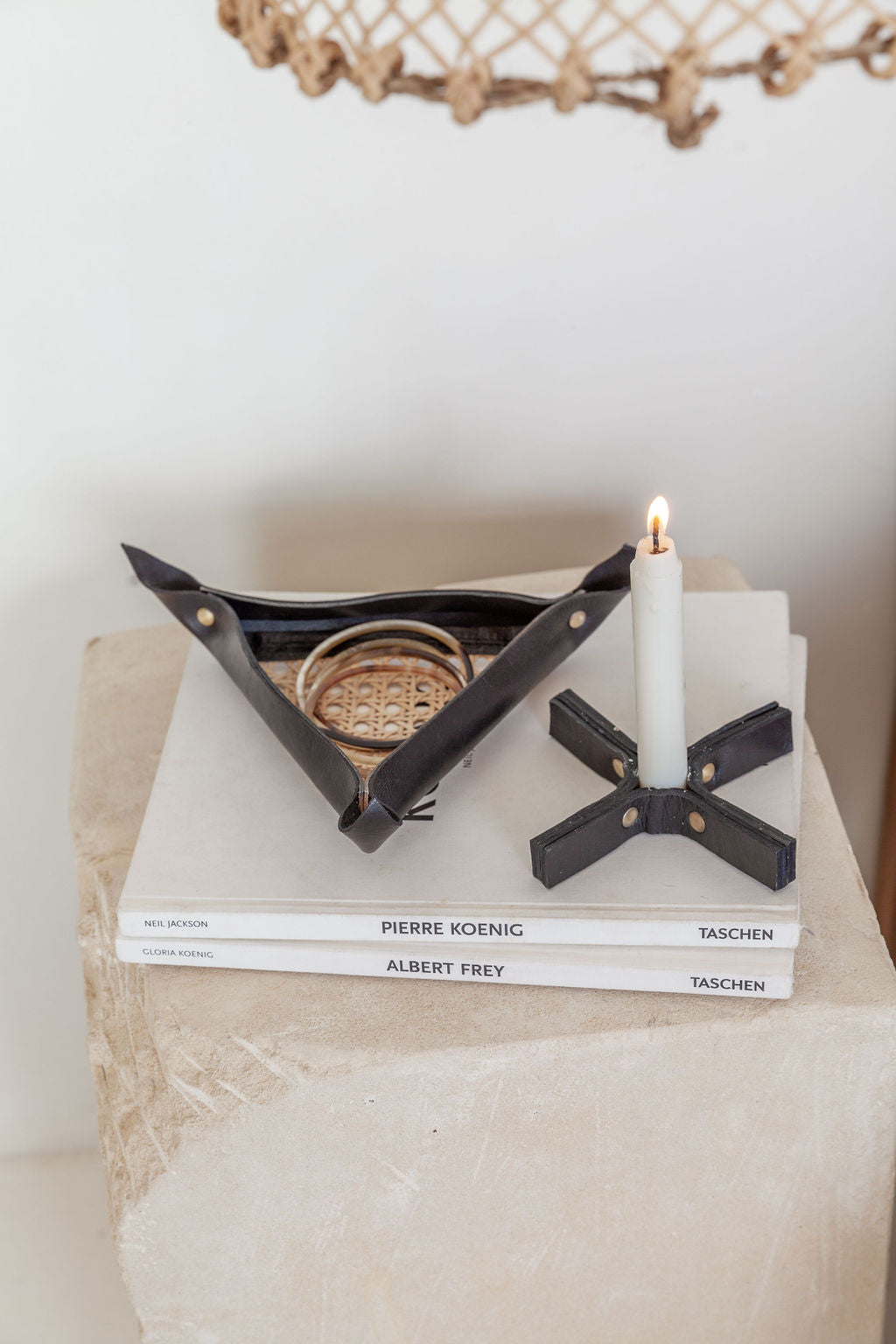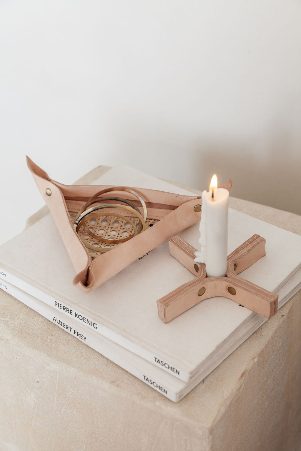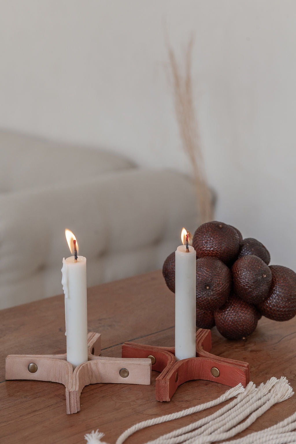 Minimal Leather Candle Holder Set of 2