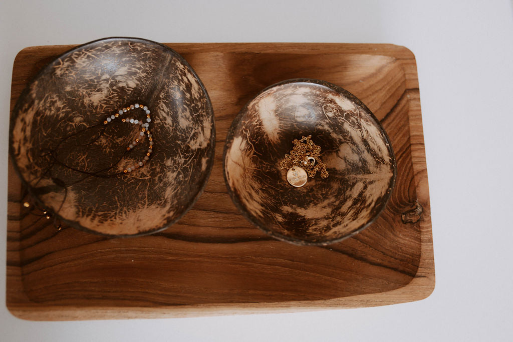These hand carved and finished coconut shells are sure to make a beautiful statement with their raw and natural look. Repurposing what was once destined for a waste pile these shells are perfect for jewelry, soap, or spices. Comes as a set of 2.