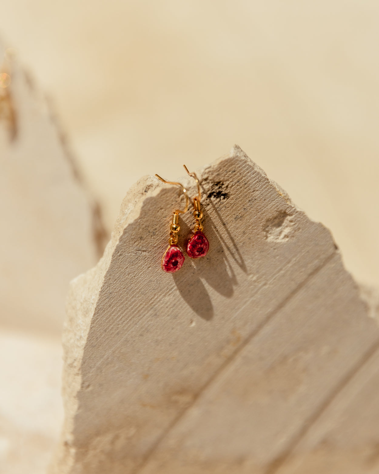 - Each set of earrings is made with real flowers, preserved in resin for a one-of-a-kind look.