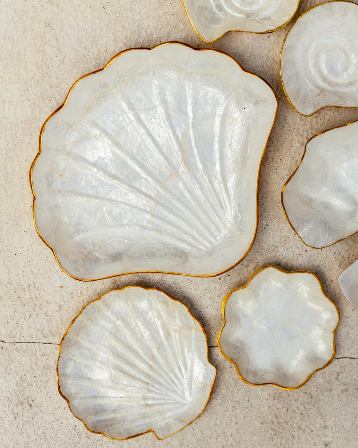 Available in a variety of sea-inspired shapes, they’re designed to add both utility and timeless beauty to your everyday rituals. Whether styled on a nightstand, vanity, or entryway table, these catch-alls bring a natural shimmer and refined charm to any space.
