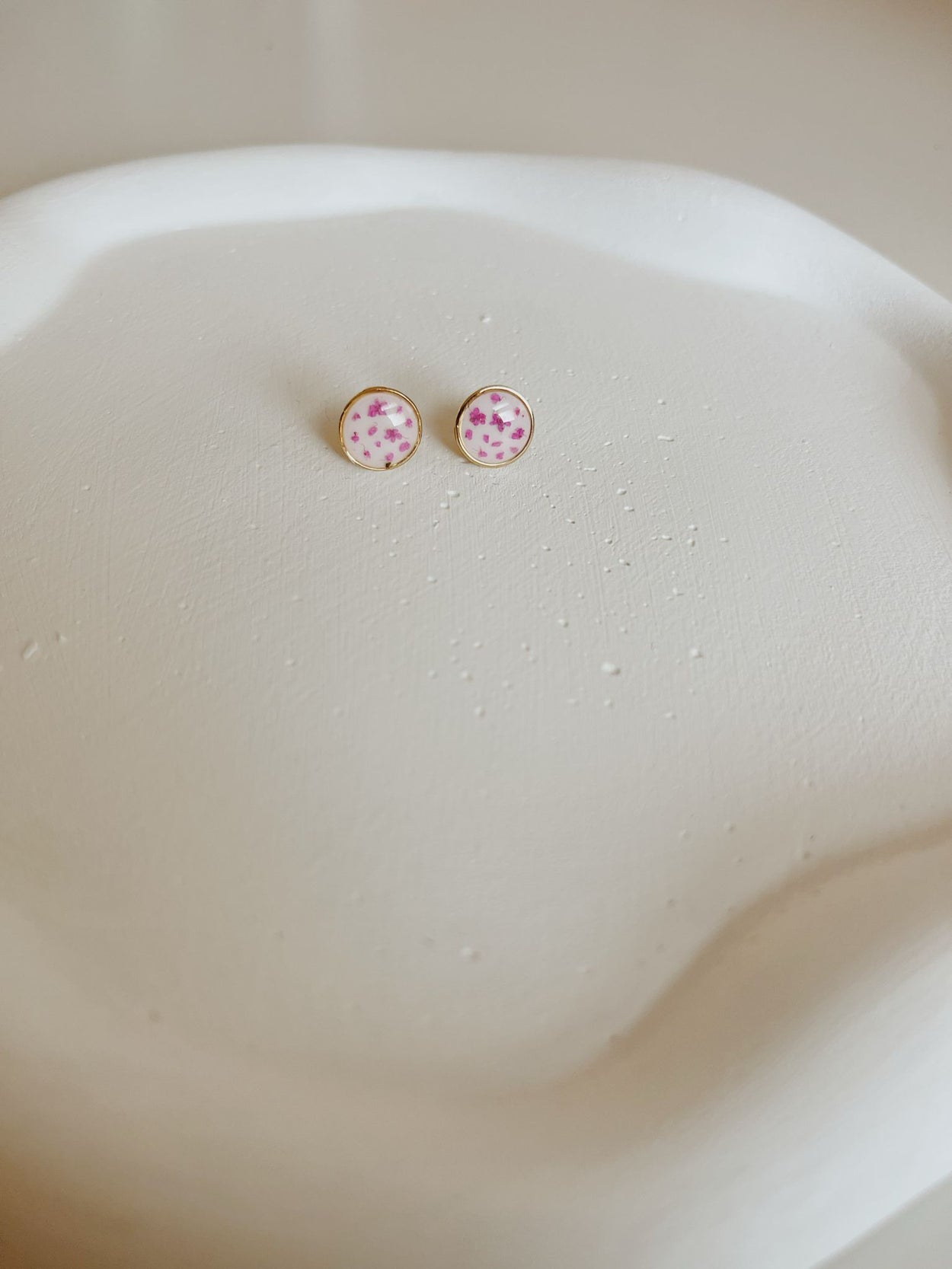 Nature, beautifully preserved. These delicate stud earrings feature real wildflowers encased in clear resin, set in a timeless gold frame. Thoughtfully designed to bring a touch of the natural world into your everyday style, they’re lightweight, effortless, and made to be worn with anything.