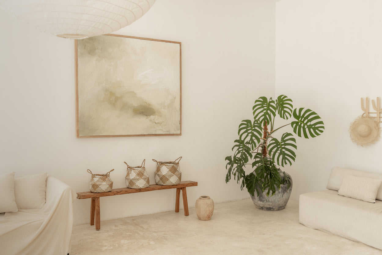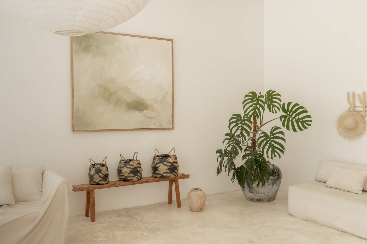 Handcrafted from seagrass in Bali, Indonesia this multipurpose plaid basket is your answer to elegantly decluttering your home. Perfect for storing towels, blankets, or toys. Also makes an elevated new home for your favorite potted house plant.