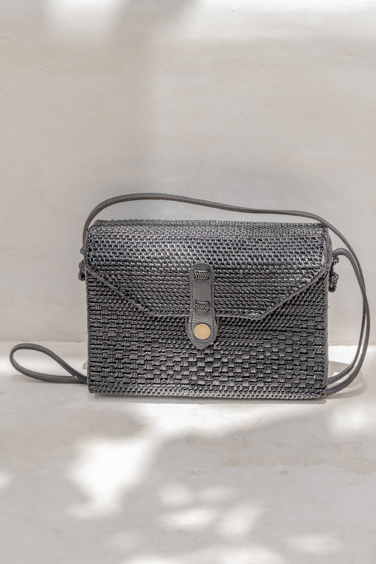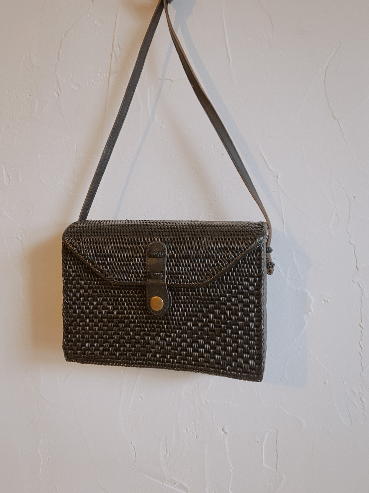 Dress it up or dress it down. This natural rattan purse may just be your new favorite accessory. Handmade in Bali, features include: rectangle body shape, leather strap with metal snap closure, and lined with traditional batik fabric.