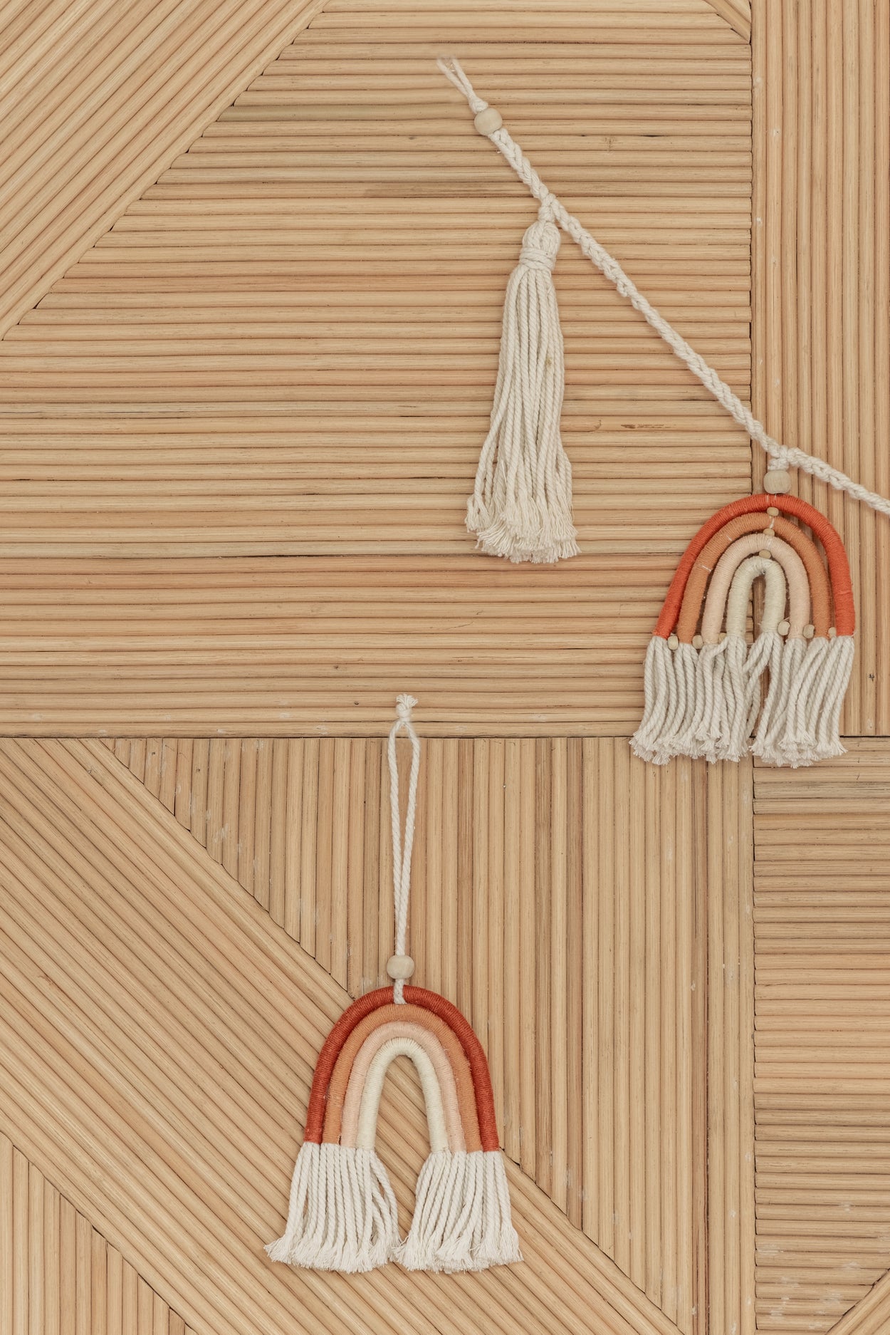 Handmade from 100% organic cotton these mini rainbows are sure to brighten any space! Add to a mobile or use as wall decor - your mini is sure to love it!