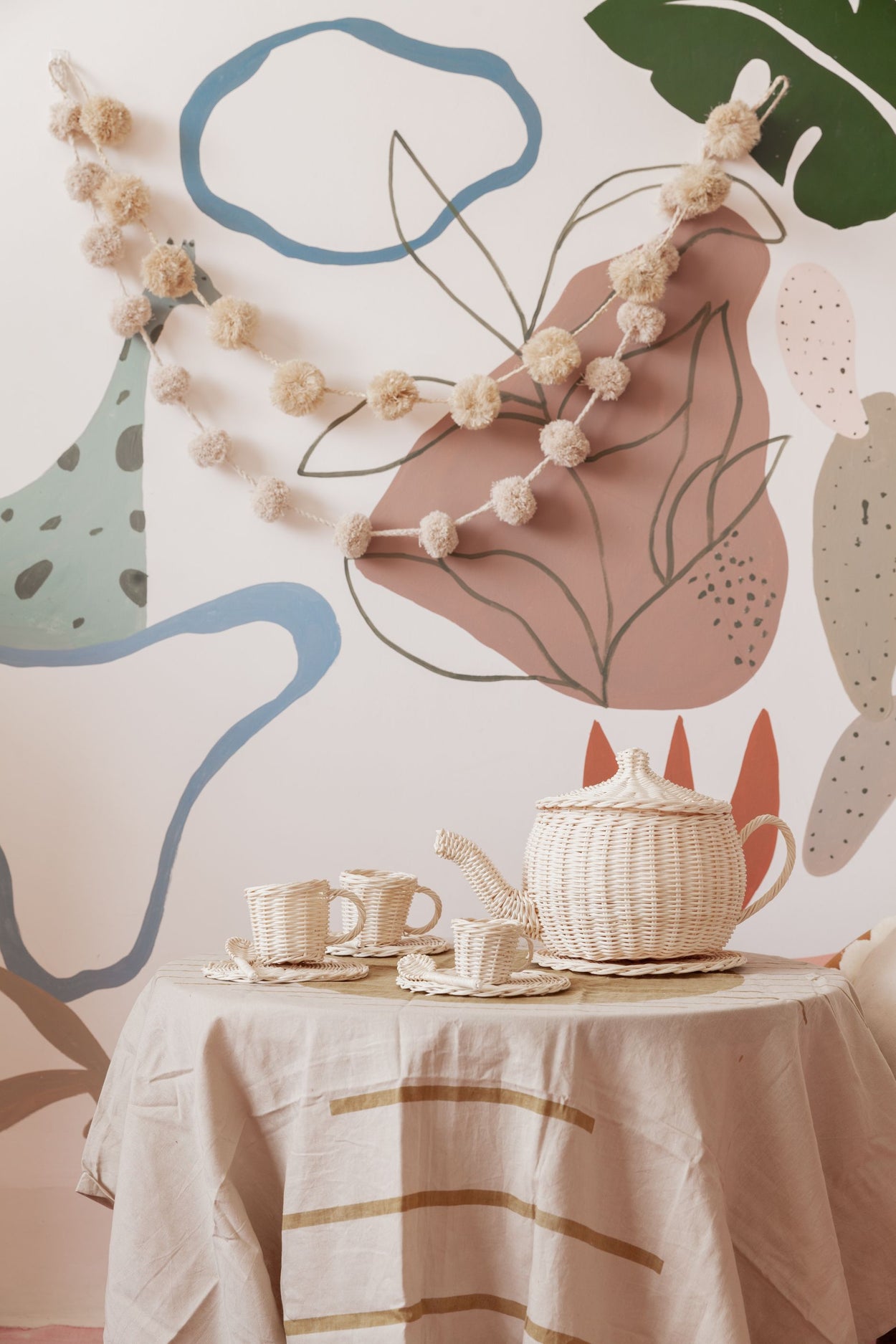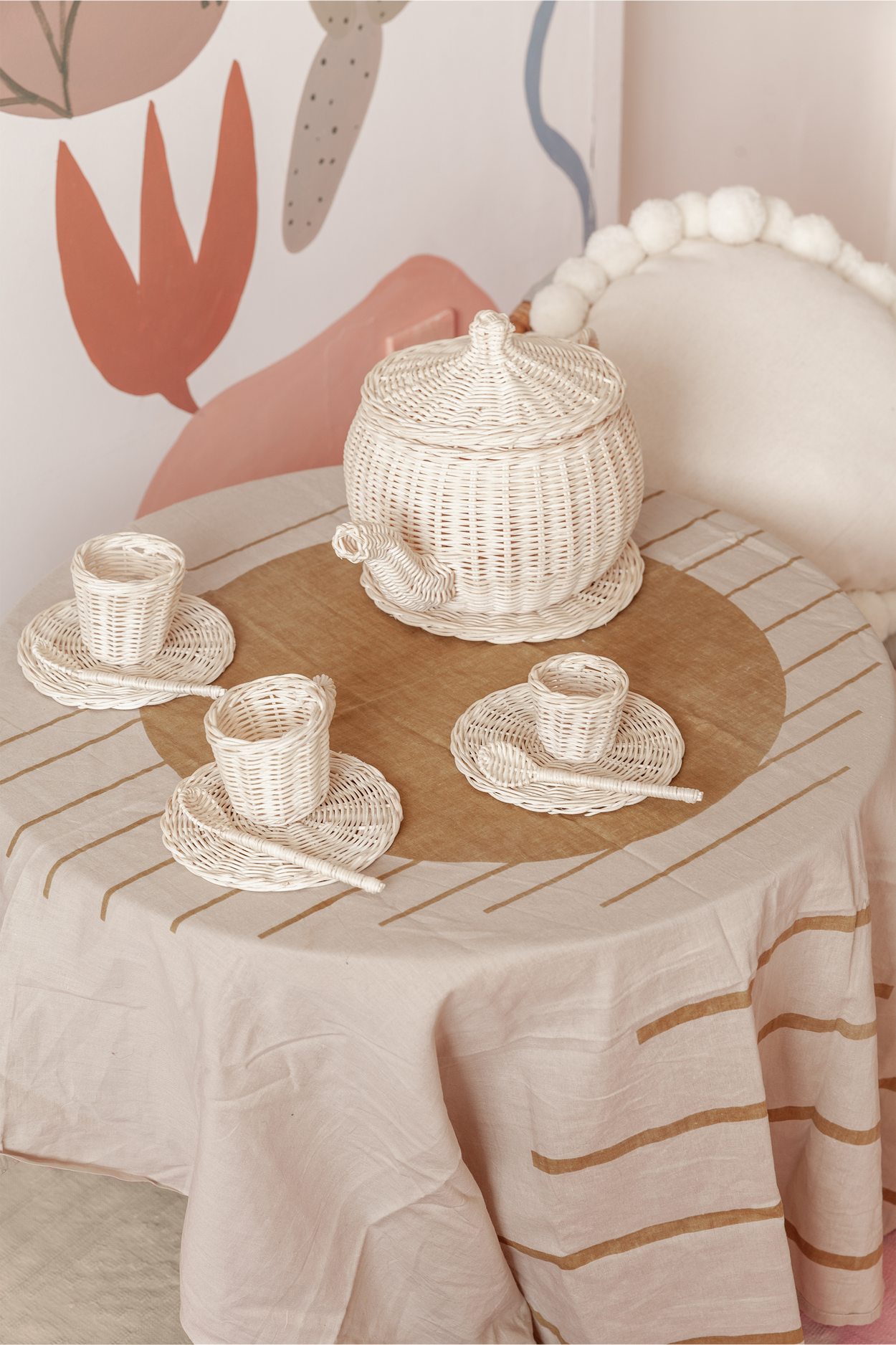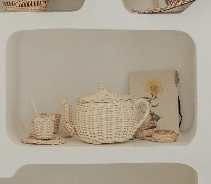 Designed with attention to detail, handcrafted with natural materials. This timeless kids rattan tea set comes complete with a handwoven teapot, cups and stirring spoons. All made to fit perfectly inside the teapot making storage sweet and simple.